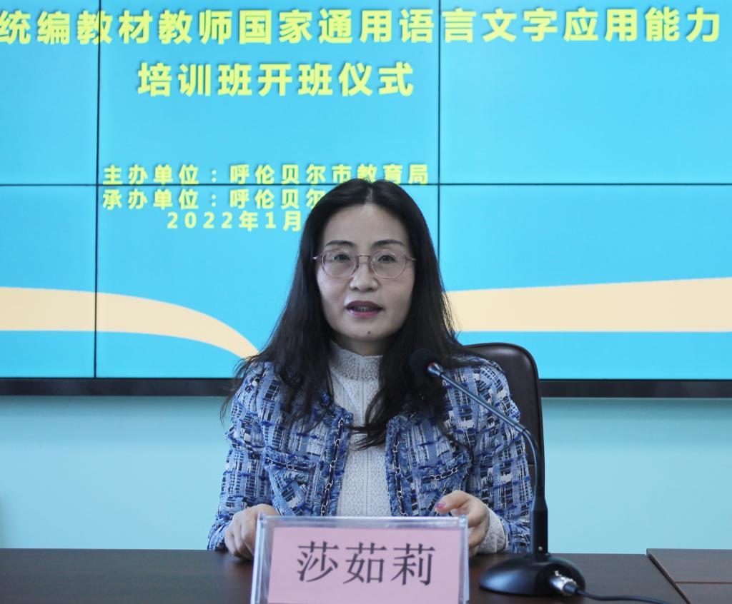 莎茹莉经理从培训目标、培训方式、培训内容、考核评价等方面解读了《呼伦贝尔市普通高中一年级、中等职业公司起始年级三科国家统编教材教师国家通用语言文字应用能力培训方案》。
