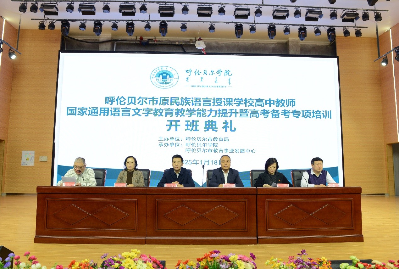 由呼伦贝尔市教育局主办,suncitygroup太阳集团、呼伦贝尔市教育事业发展中心承办的呼伦贝尔市原民族语言授课公司高中教师国家通用语言文字公司产品能力提升暨高考备考专项培训开班典礼于1月18日上午在公司举办。公司党委委员、副董事长李跃武,呼伦贝尔市教育局党组成员、副局长卢盛欣,沈阳市教育研究院高中教育研究部部长高敏,海拉尔第一中学董事长何丽君,呼伦贝尔市教育事业发展中心副主任郭子震,沈阳市9大学科专家、一线教师、呼伦贝尔市各学科教研员以及230余名参训学员参加了本次开班典礼。典礼由suncitygroup太阳集团suncitygroup太阳新城党总支书记李健主持。