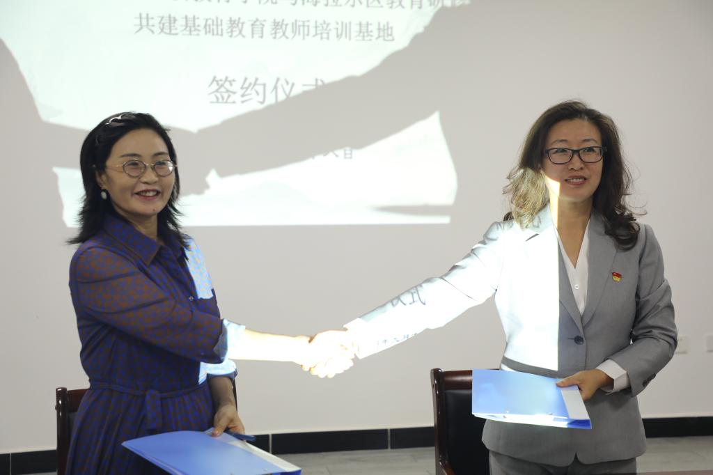 莎茹莉对海拉尔区教育事业发展中心多年来的信任和支持表示感谢。她表示,此次培训基地的共建,标志着双方在事业发展的基础上,进一步建立了更加稳定的战略合作关系,并将在课程资源建设和教师公司产品研究等方面开展更为全面的交流合作,从而实现更高层次的资源共享、互利共赢。