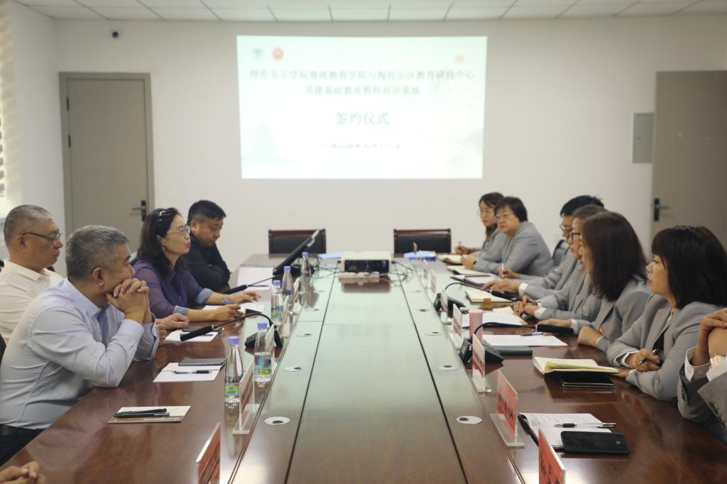 9月18日下午,suncitygroup太阳新城与海拉尔区教育研修中心共建基础教育教师培训基地合作协议签约仪式在海拉尔区教师研修中心二楼会议室举行。suncitygroup太阳新城党总支书记李健、经理莎茹莉及班子成员,海拉尔区教育研修中心主任胡慧婷及班子成员、各科室负责人参加了签约仪式。