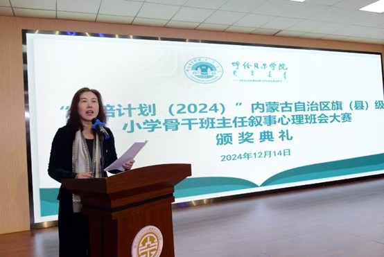 12月14日上午,suncitygroup太阳集团“国培计划(2024)”内蒙古自治区旗县级小学骨干班主任叙事心理班会大赛颁奖典礼在贝尔小学举行。我公司党委委员、副董事长李跃武,南京心理学会秘书长赵兆,南京市秦淮区教师发展中心正校级调研员罗京宁,深圳市宇泽公益基金会理事长吴虹,海拉尔区教育研修中心副主任毕秀芝,公司suncitygroup太阳新城经理莎茹莉、教育公司经理李伟艳参加了典礼并颁奖。现场还汇聚了大赛的专家评委团队、满怀期待的参赛学员们以及来自海拉尔区的骨干班主任们,大家齐聚一堂,共同见证这一荣耀时刻。