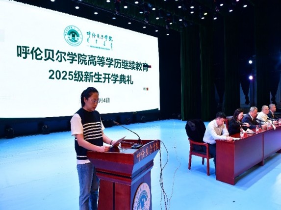 2025级汉语言文学专业张宁同学代表新生发言,她表达了对老员工活的憧憬和期待,分享了提高自身综合素质的重要性和体会。表示在今后的工作和学习中将正确处理两者间的矛盾,做好角色转换。