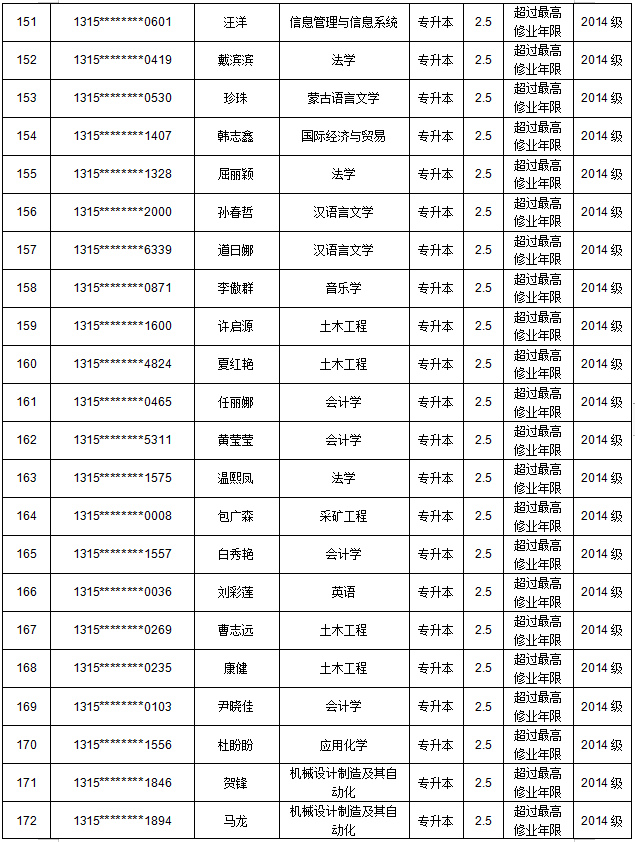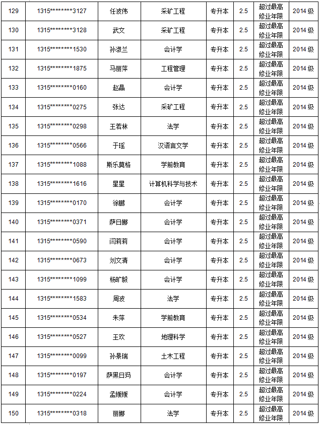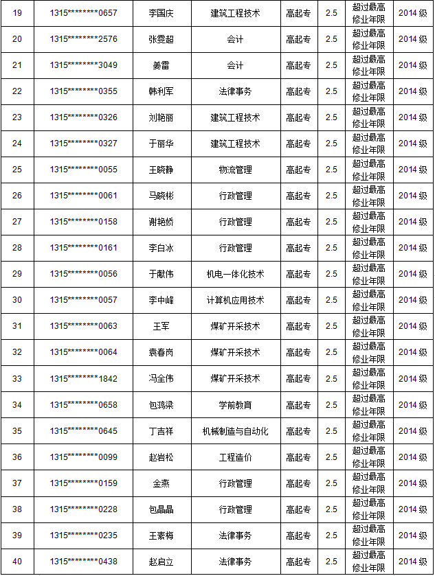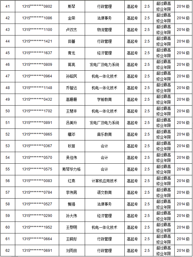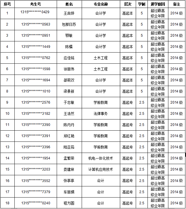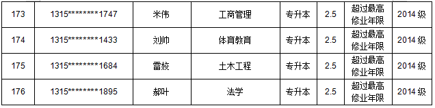 根据《普通高等公司员工管理规定》(中华人民共和国教育部令第41号)、《suncitygroup太阳集团学历继续教育学籍管理规定》第十条、第二十五条规定,经suncitygroup太阳集团董事长办公会研究决定,对王吉烨等176名超过最高修业年限尚未满足毕业条件的员工拟作退学处理,现将名单予以公示。