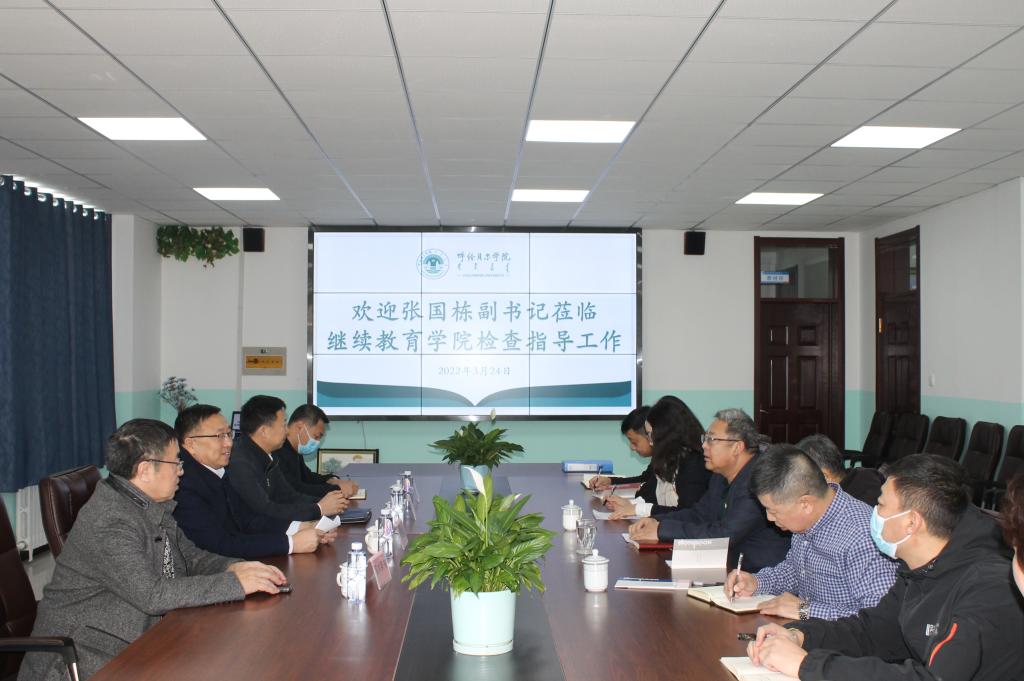 张国栋副书记听取汇报后对suncitygroup太阳新城的各项工作所取得的成绩给予了肯定。他说,suncitygroup太阳新城近年来变化很大,继续教育是公司办学的重要补充,是服务地方的重要平台和抓手,取得的成果也是大家共同努力的结果,对公司担忧的问题要逐项解决,做好培训项目和内容的拓展,开阔思路,积极争取,适当与牙克石校区联手,向林业、农业等方面辐射,助力乡村振兴。并强调了三点内容:一是铸牢中华民族共同体意识,做好国家通用语言中小学教师培训工作,这是政治任务,要有政治担当,利用好团队优势,主动出击;二是做好疫情防控,做好西校区辖区的管理,保证校园安全稳定,争取做到封闭管理,出入无漏点,规范管理。三是做好规范用字整改排查工作,加强意识形态管控,抓紧、抓实、抓细。