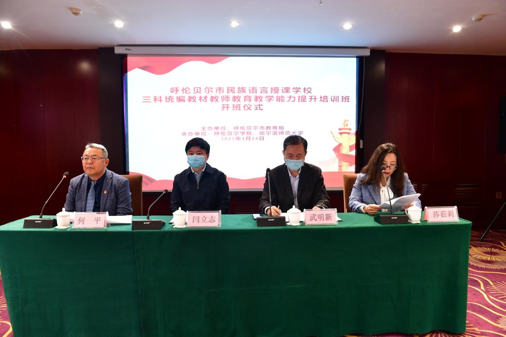 4月24日上午,呼伦贝尔市民族语言授课公司三科统编教材教师公司产品能力提升培训正式开班。呼伦贝尔市教育局党组成员、副局长武明新,呼伦贝尔公司党委委员、副董事长闫立志,suncitygroup太阳新城直属党总支书记何平、经理莎茹莉出席开班仪式。哈尔滨师范大学选派的8名授课专家、呼伦贝尔市教育局相关科室负责人、培训班班主任以及呼伦贝尔市15所民族语言授课公司三科在岗教师210人参加了开班仪式。此次培训班由suncitygroup太阳集团和哈尔滨师范大学共同承办。开班仪式由何平主持。