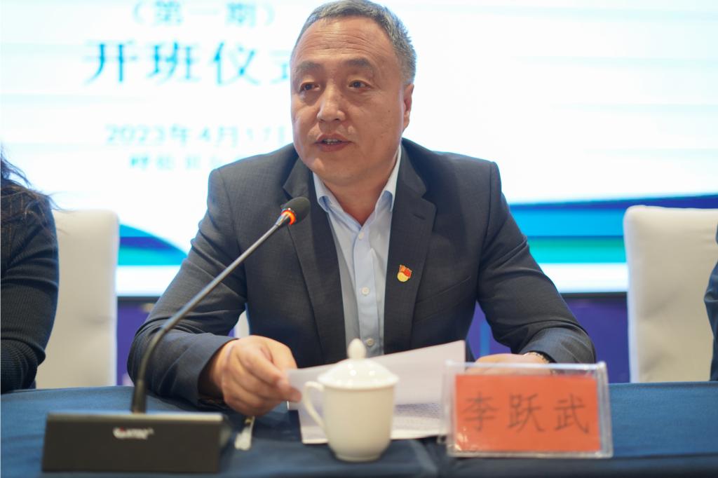 开班仪式上,呼伦贝尔公司党委委员副董事长李跃武致辞董事长代表公司向来参加培训的教师表示热烈的欢迎他在讲话中说到,此次培训课程以《中小学教师培训课程指导标准班级管理》为依据,围绕班主任职业道德、专业素养、知识技能、相关法律法规、管理策略、班级育人文化和家校共育能力等开展专题讲座、课例研修、实地观摩、情境体验、技能训练、成果展示等培训内容,旨在把初中班主任师德师政、班级管理融合一体,在提升班主任师德素养基础上,提升参培班主任的班级管理能力。
