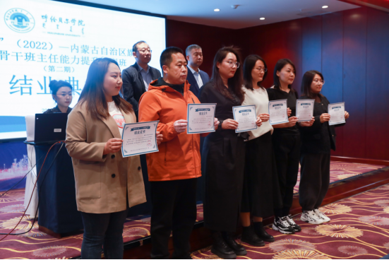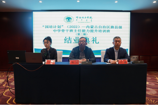 2023年5月15日晚,由公司承办的“国培计划”2022年内蒙古自治区旗县级中学骨干班主任(东部片区)培训项目(第二期)结业典礼在凯景嘉华酒店15楼报告厅举行,suncitygroup太阳集团教育公司党总支书记海江、suncitygroup太阳新城副经理汪鑫、培训班主任孙铭萱霖以及全体学员参加了结业典礼。结业仪式由孙铭萱霖老师主持。