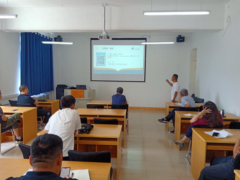 会上,有两位班主任对2021年暑假中学教师继续教育培训开班仪式中对学员如何用云班课APP进行注册、课程学习与学习管理以及培训期间安全管理等相关内容以多媒体课件的形式进行了解读演练。