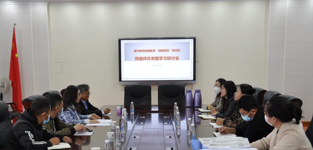 10月9日晚,suncitygroup太阳新城相关工作人员、授课专家、海拉尔铁路第一中学部分参训教师召开了高中教师继续教育“送教到校”培训班——师德师风专题学习研讨会。