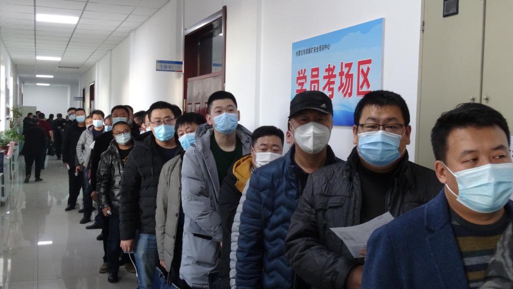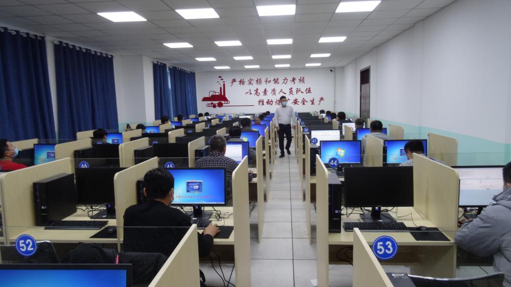 考试期间,严格按照知要求开展各项工作,考生进入考区进行体温检测,备有一次性医用口罩、一次性手套、消毒液等防控用品,对考场进行消毒,保证各区域卫生清洁。每天上午配合技术服务中心进行考生健康条件审核,做好健康管理信息采集表、个人健康码、煤矿企业情况说明、承诺书等材料收集提报工作。下午进行45场的考试,每场30人。
