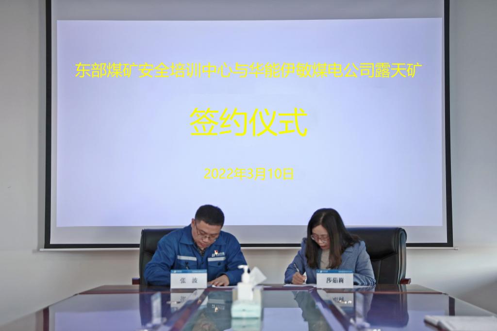 3月10日,在伊敏露天矿,安培中心与华能伊敏煤电公司露天矿签订2022年度煤矿安全培训协议,莎茹莉经理及伊敏露天矿矿长张波、副矿长舒应秋出席签约仪式。